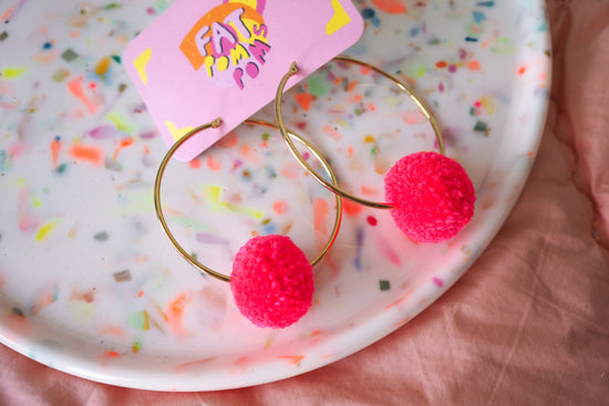 Nuestros pendientes con pompones fueron lo primero que creamos en 2014 y han sido nuestro artículo más popular desde entonces. ¡Dale un toque de diversión a tu día y pruébalos!