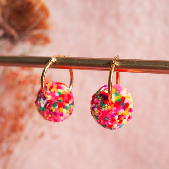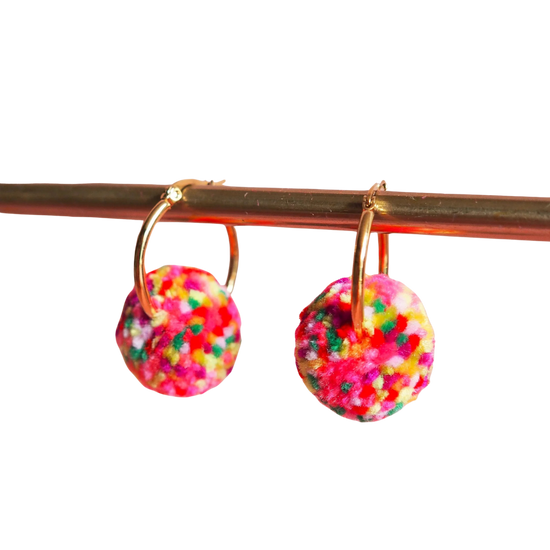 Our Pom Pom earrings were the first things we created back in 2014 and they have been our most steadily popular item since then. Inject some fun into your day and try them out!