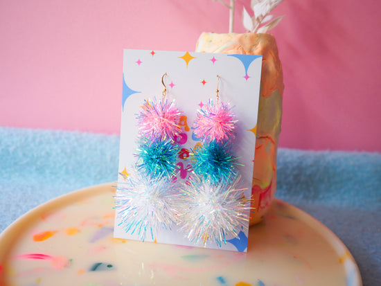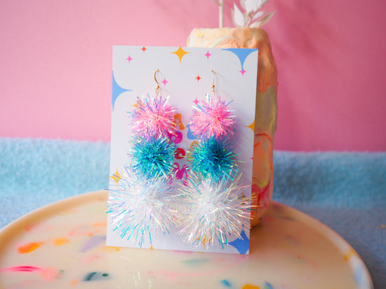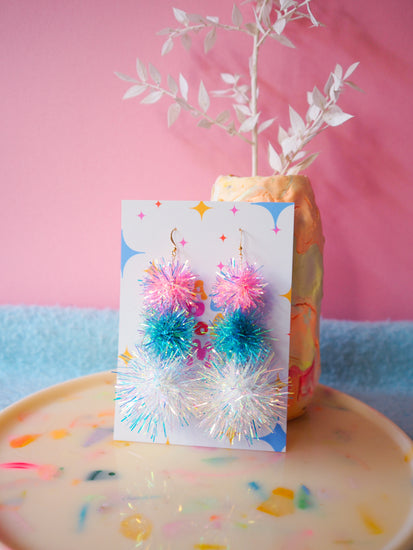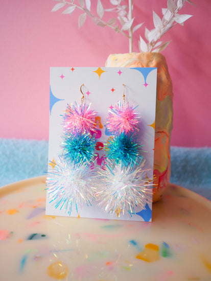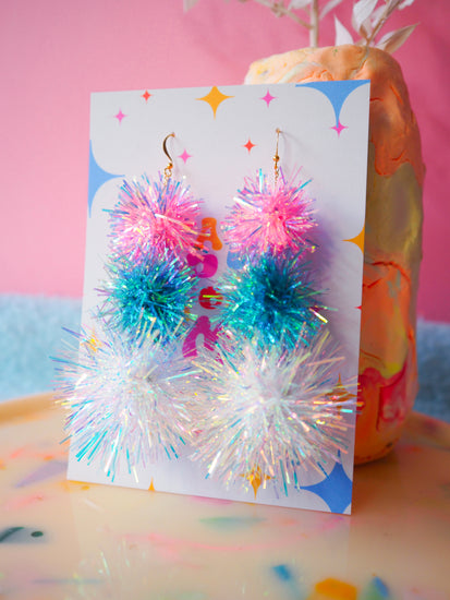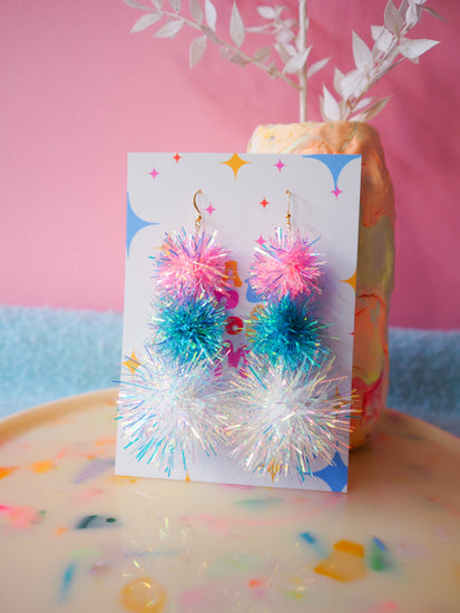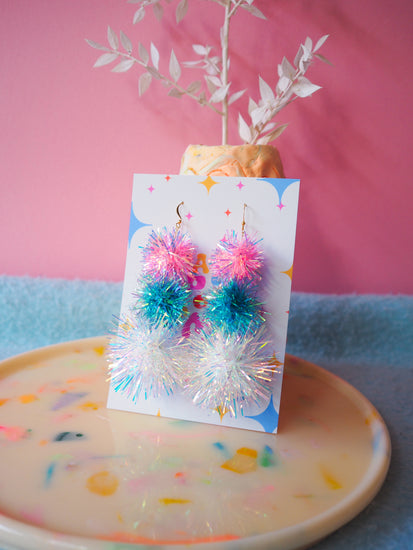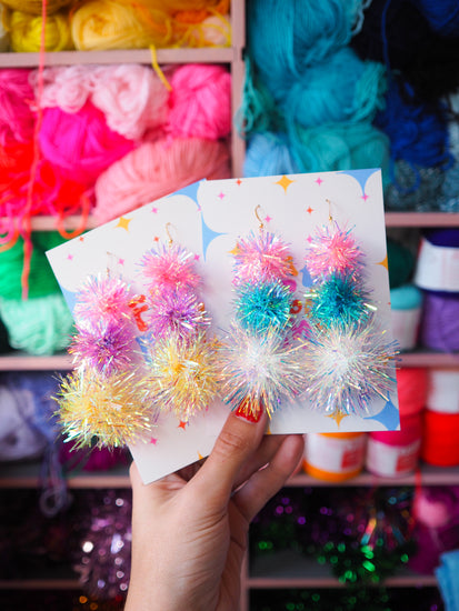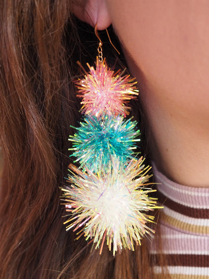 Behold our brand new pair of Statement Tinsel Earrings! Layered with each pom pom getting bigger - these earrings are sure to be a conversation starter!