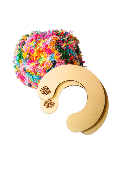 After years of hoping and praying for a giant pom pom to be released online, I suddenly realised maybe I should just do it myself?! Exclusively designed by us and manufactured by a fellow small business Flux Laser Studio- This is the first quality Giant Pom Pom maker available to buy, I have designed this with ease of use in mind and have made over 280 pom poms using this unique design so you can be sure its perfect!