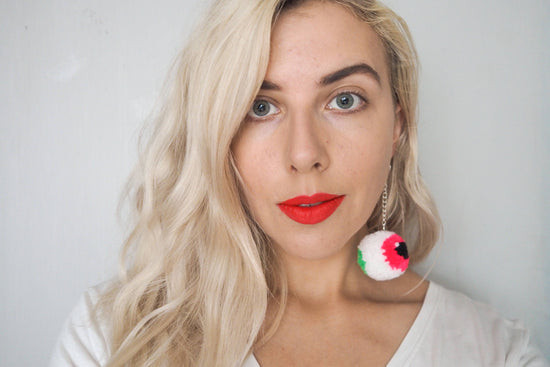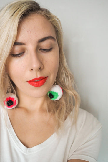 Our Pom Pom earrings were the first things we created back in 2014 and they have been our most steadily popular item since then. Inject some fun into your day and try them out!