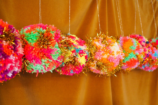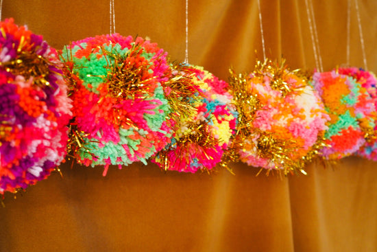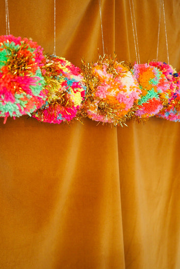 Our Giant Handmade Pom Pom Tinsel Baubles are back! From popular demand we decided to relaunch our giant tree baubles. Choose from a Set of 4, 8 or 12!