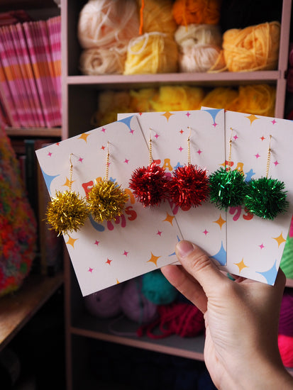 Fat Pom Poms is a one woman brand focusing on Accessories, Homeware & DIY Kits. Jess, the woman behind the brand, has been making since 2014 when she started in her hometown of Deal, Kent. She decided to take the plunge after quitting her Psychology Degree and while working alongside her main job working in a kitchen. Jess started off making pom poms - all kinds of pom poms from earrings to necklaces to sculptures, the list goes on, and over the years has slowly expanded her use of materials to include epoxy resin, tinsel & glitter.