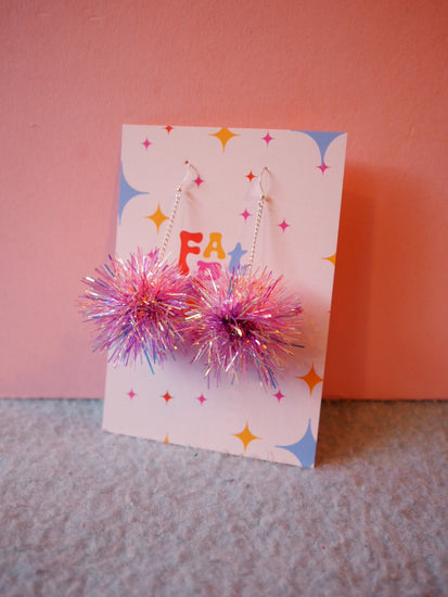 Mini Christmas Pastel Pink & Lilac Tinsel Earrings