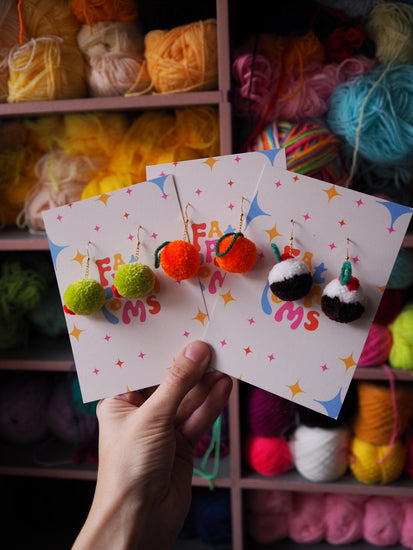 Fat Pom Poms is a one woman brand focusing on Accessories, Homeware & DIY Kits. Jess, the woman behind the brand, has been making since 2014 when she started in her hometown of Deal, Kent. She decided to take the plunge after quitting her Psychology Degree and while working alongside her main job working in a kitchen. Jess started off making pom poms - all kinds of pom poms from earrings to necklaces to sculptures, the list goes on, and over the years has slowly expanded her use of materials to include epoxy resin, tinsel & glitter.
