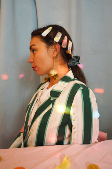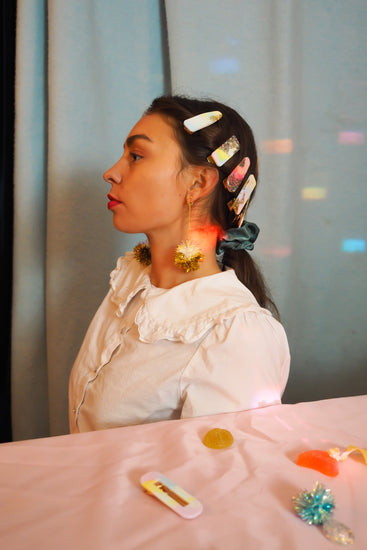 Fat Pom Poms is a one woman brand focusing on Accessories, Homeware & DIY Kits. Jess, the woman behind the brand, has been making since 2014 when she started in her hometown of Deal, Kent. She decided to take the plunge after quitting her Psychology Degree and while working alongside her main job working in a kitchen. Jess started off making pom poms - all kinds of pom poms from earrings to necklaces to sculptures, the list goes on, and over the years has slowly expanded her use of materials to include epoxy resin, tinsel & glitter.