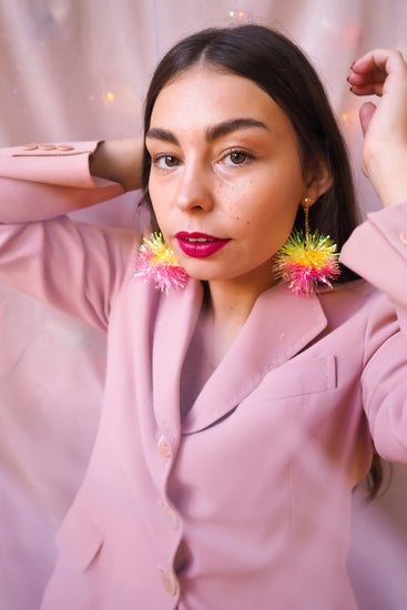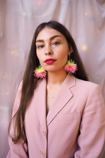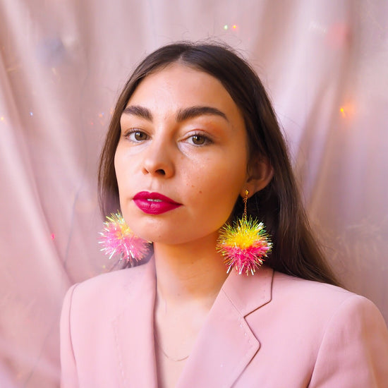 Fat Pom Poms is a one woman brand focusing on Accessories, Homeware & DIY Kits. Jess, the woman behind the brand, has been making since 2014 when she started in her hometown of Deal, Kent. She decided to take the plunge after quitting her Psychology Degree and while working alongside her main job working in a kitchen. Jess started off making pom poms - all kinds of pom poms from earrings to necklaces to sculptures, the list goes on, and over the years has slowly expanded her use of materials to include epoxy resin, tinsel & glitter.