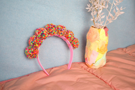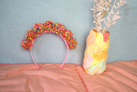 Fat Pom Poms is a one woman brand focusing on Accessories, Homeware & DIY Kits. Jess, the woman behind the brand, has been making since 2014 when she started in her hometown of Deal, Kent. She decided to take the plunge after quitting her Psychology Degree and while working alongside her main job working in a kitchen. Jess started off making pom poms - all kinds of pom poms from earrings to necklaces to sculptures, the list goes on, and over the years has slowly expanded her use of materials to include epoxy resin, tinsel & glitter.