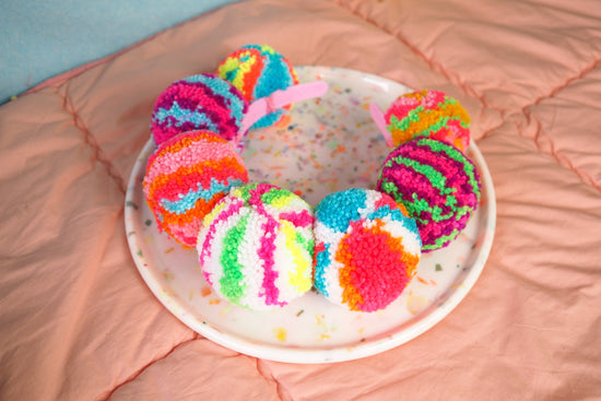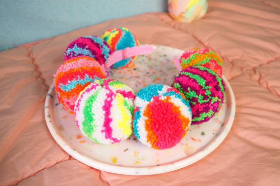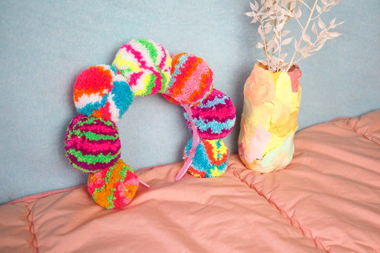 Fat Pom Poms is a one woman brand focusing on Accessories, Homeware & DIY Kits. Jess, the woman behind the brand, has been making since 2014 when she started in her hometown of Deal, Kent. She decided to take the plunge after quitting her Psychology Degree and while working alongside her main job working in a kitchen. Jess started off making pom poms - all kinds of pom poms from earrings to necklaces to sculptures, the list goes on, and over the years has slowly expanded her use of materials to include epoxy resin, tinsel & glitter.