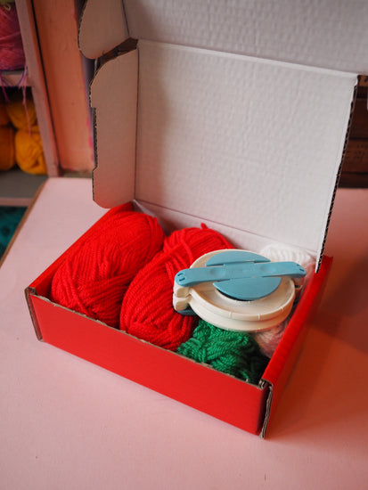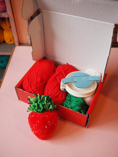 A classic! This kit guides you to make a big, juicy strawberry with bright red yarn, little white “seeds” and a leafy green top. Sweet, simple, and instantly recognisable.
