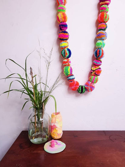 Fat Pom Poms is a one woman brand focusing on Accessories, Homeware & DIY Kits. Jess, the woman behind the brand, has been making since 2014 when she started in her hometown of Deal, Kent. She decided to take the plunge after quitting her Psychology Degree and while working alongside her main job working in a kitchen. Jess started off making pom poms - all kinds of pom poms from earrings to necklaces to sculptures, the list goes on, and over the years has slowly expanded her use of materials to include epoxy resin, tinsel & glitter.