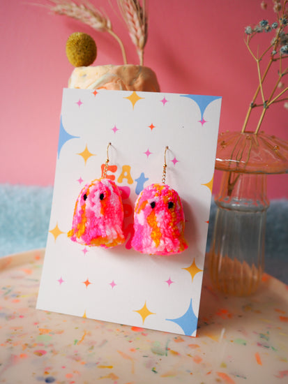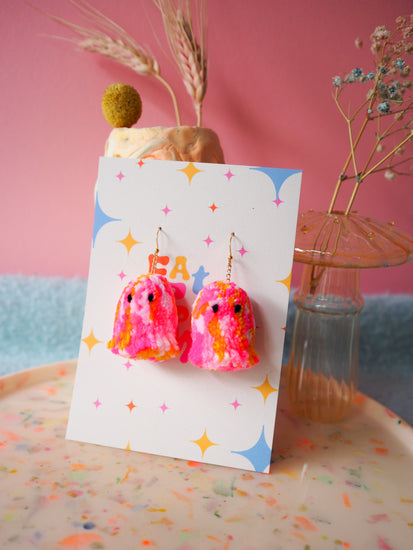 Tie Dye Ghost Pom Pom Earrings