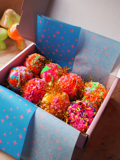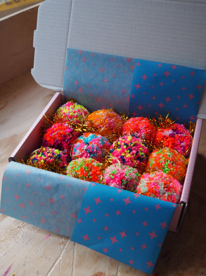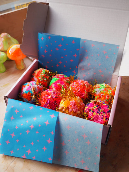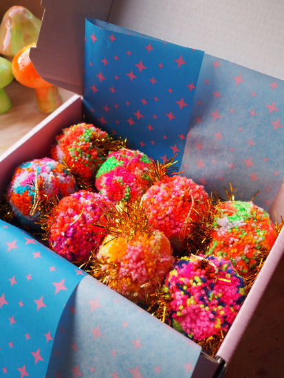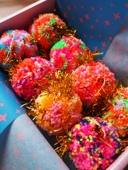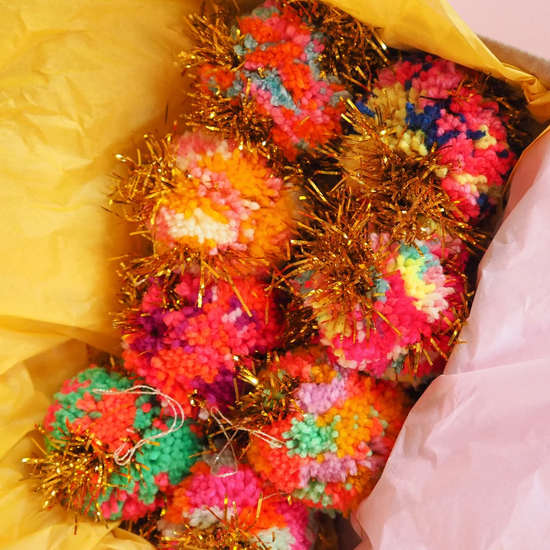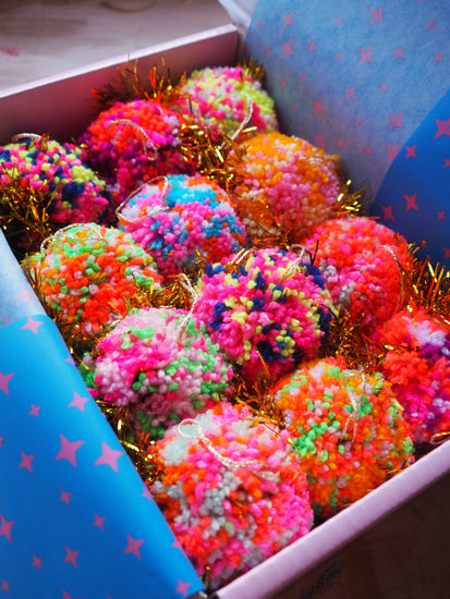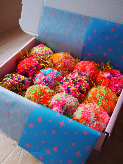 Each Pom Pom Bauble is made by hand in our studio in Margate, UK making each one truly one of a kind.